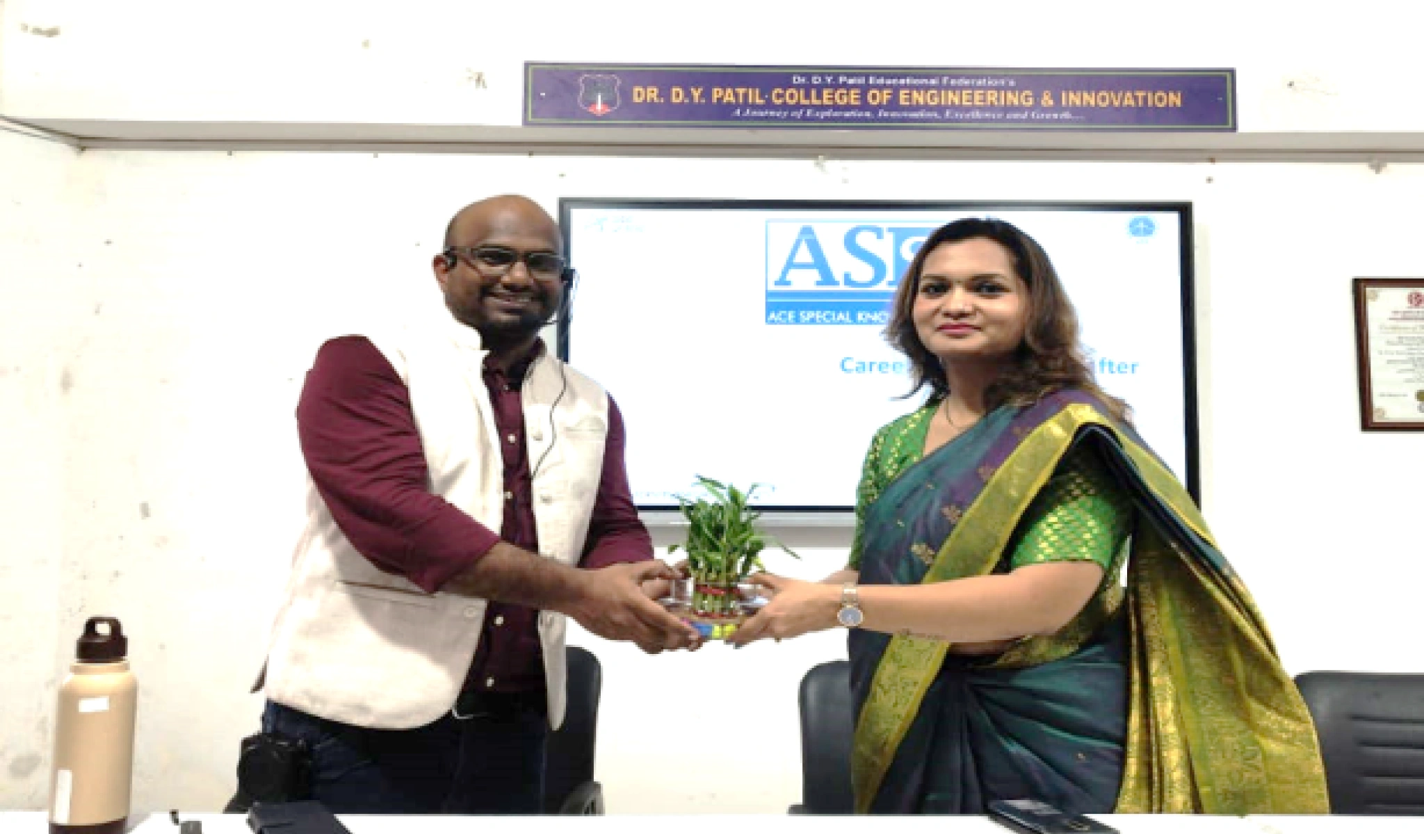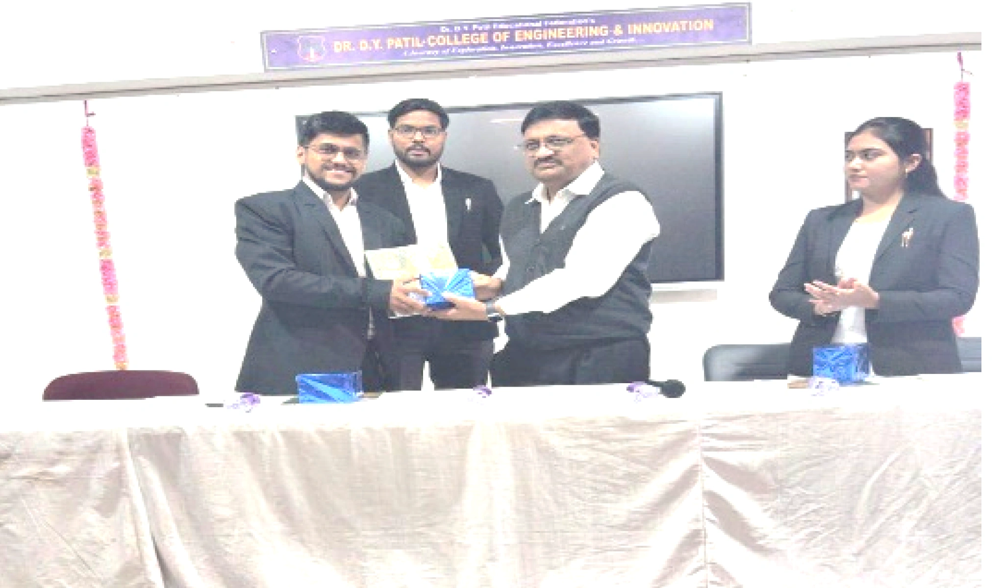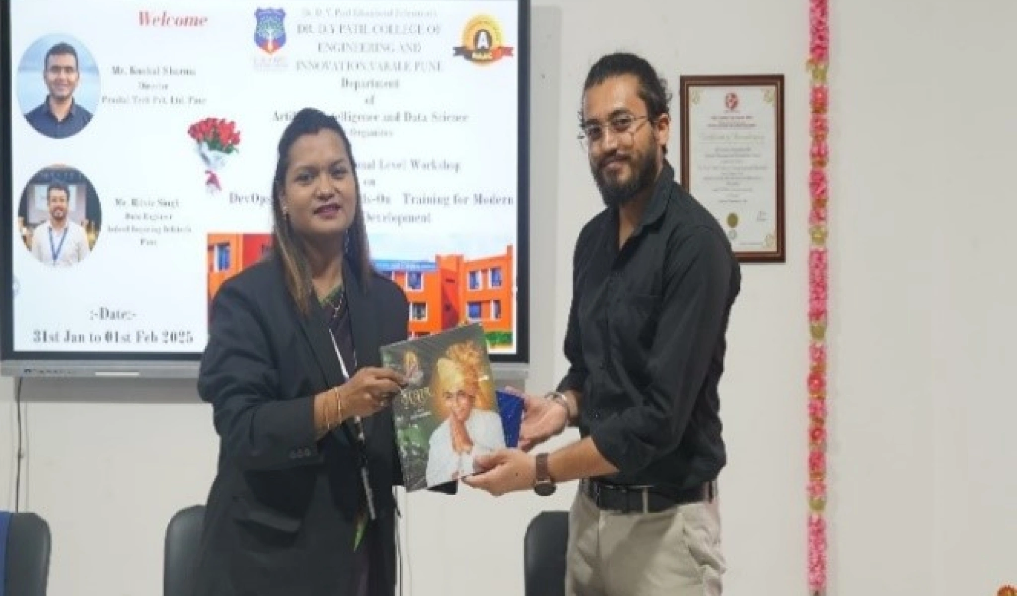 On the behalf of DYPCOEI, faculty presenting a Token of appreciation to CDAC Representative Mr. Santosh as a gesture gratitude .