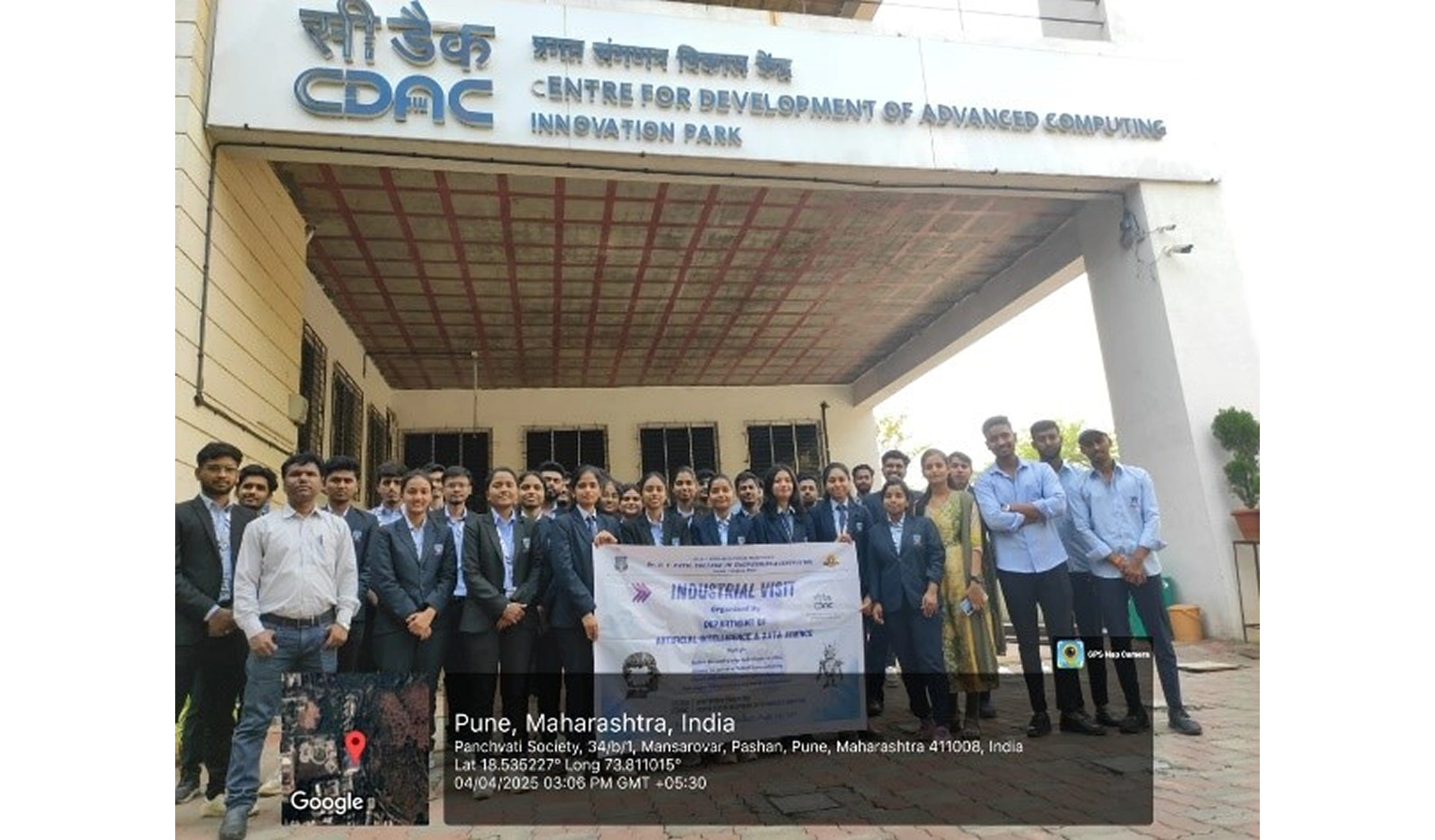 Group photo of department of AI&DS students & faculty in front of the CDAC Innovation Park, Pashan- “A moment to remember from the Industrial Visit.”