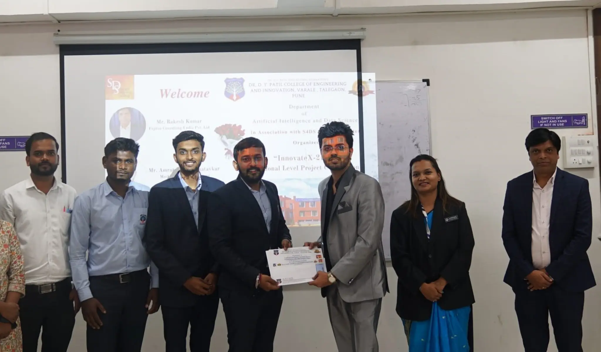 A proud moment shared with all the winners of the National Level Project Competition Innovatex 2K25, organized by the Department of Artificial Intelligence & Data Science at Dr. D. Y. Patil College of Engineering & Innovation, Varale, Talegaon, Pune. A celebration of innovation, hard work, and excellence!