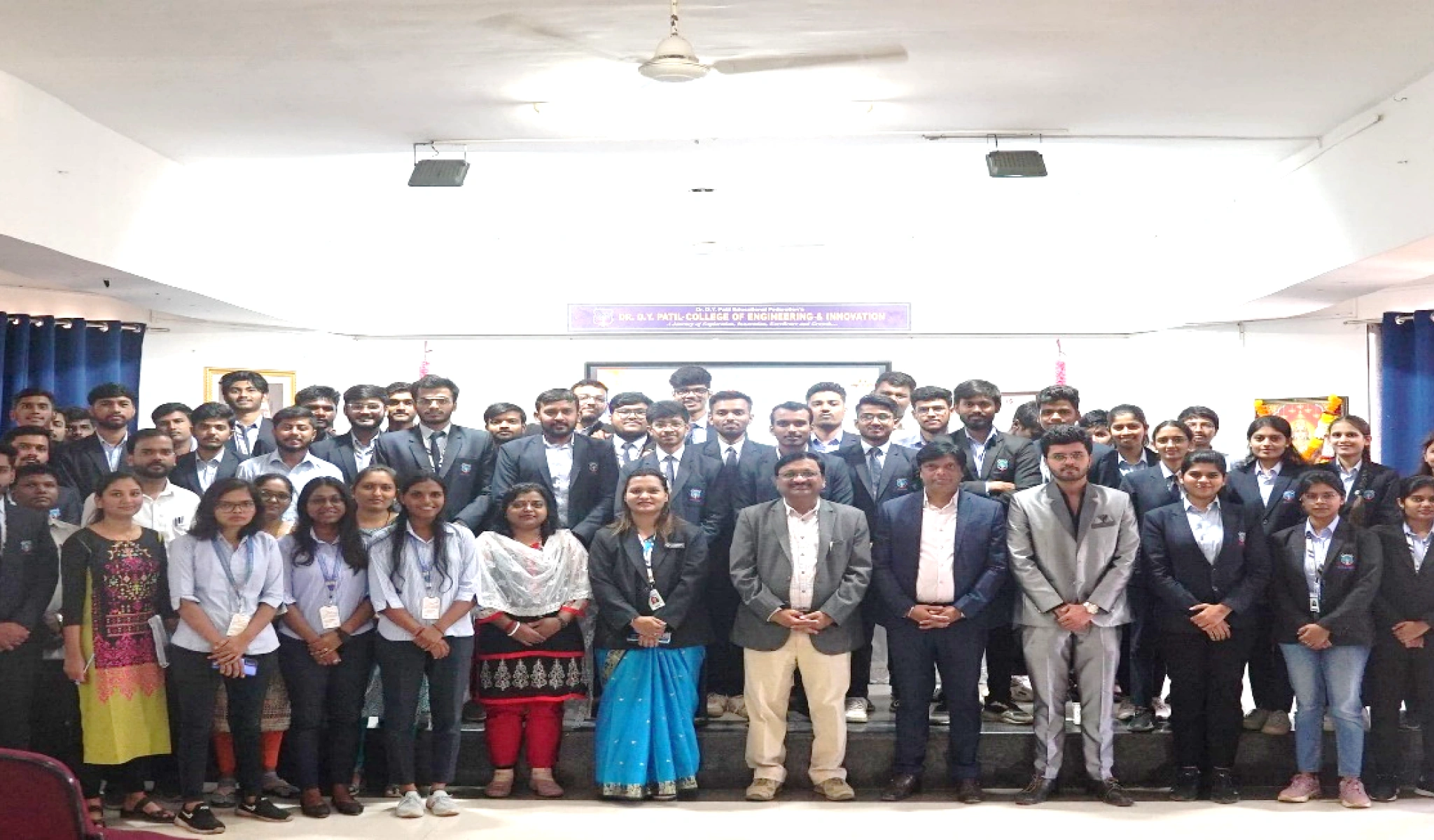 Group photo with all participant alongwith Dr. Suresh Mali Sir (Principal, DYPCOEI), Dr. Dipannita Mondal (Head, AI&DS), Esteemed judges Mr. Rakesh Kumar and Mr. Amrut Khatavkar (Industry Experts) and Faculty members