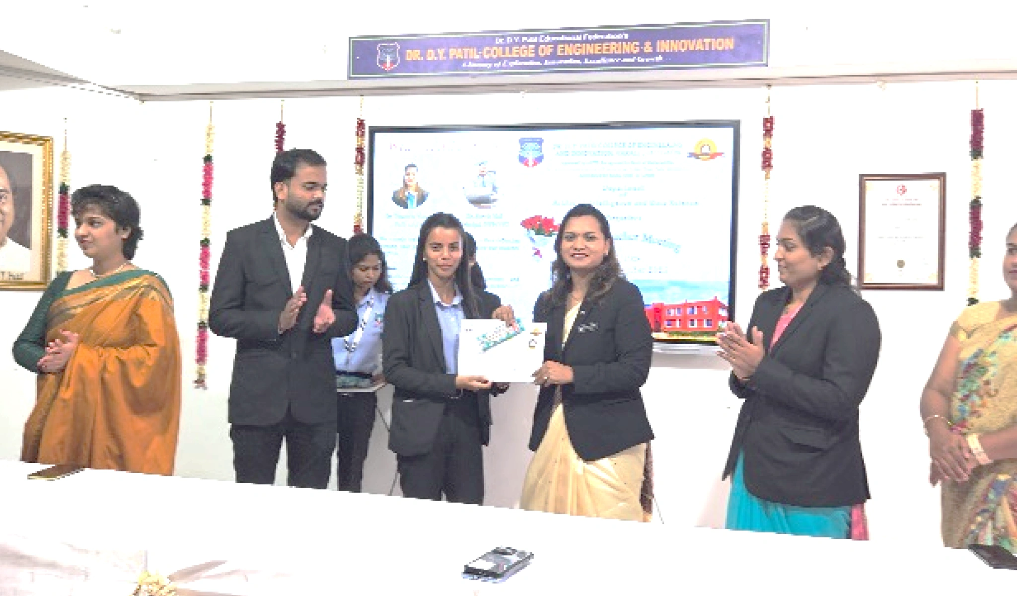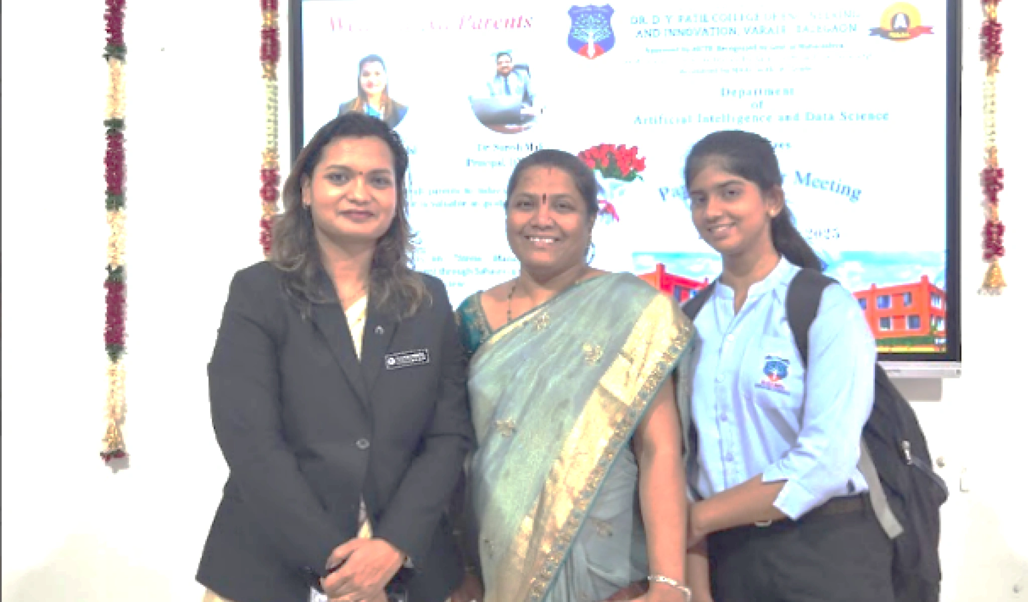 Respected Principal Dr. Suresh Mali Sir, HoD, AI&DS Dr. Dipannita Mondal Madam and Other faculty member of AI&DS congratulating Ruturaj Dharne on being placed at Parallel Wireless India Pvt. Ltd. with a 11 LPA.